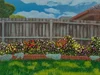 "Dahlia garden (early morning)" (Oil and acrylic on Masonite, 45.5cm x 60cm, 2021)