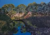 "Steele Creek from the wooden footbridge at Essendon West" (Oil on marine plywood, 29cm x 40.5cm, 2023)