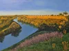 "Over the Maribyrnong River at Essendon West (Sunrise)" (Oil & acrylic on Masonite, 46cm x 61cm, 2021)