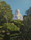 "The statue of Buddha facing the Maribyrnong River at Avondale Heights" (Oil on canvas on board, 44.9cm x 35.3cm, 2023)