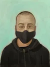 "Self-Portrait with a Mask" (Oil and acrylic on Masonite, 35cm x 45cm, 2021)